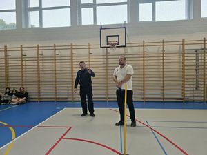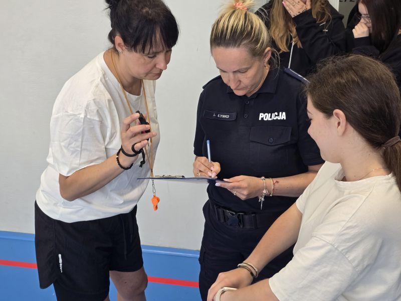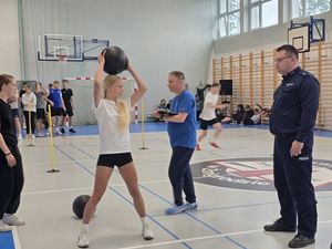 Policjanci przeprowadzili test sprawności fizycznej dla uczniów szkoły ponadpodstawowej. Interesuje Cię praca w Policji? Przyjdź i dowiedz się więcej