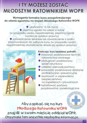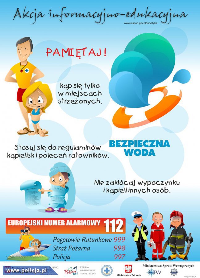 Trwa ogólnopolska akcja informacyjno-edukacyjna „Bezpieczna Woda”, skierowana przede wszystkim do dzieci i młodzieży szkolnej. Jej celem jest popularyzacja i podniesienie świadomości społecznej z zakresu bezpiecznego letniego wypoczynku na wodach i terenach przywodnych.
