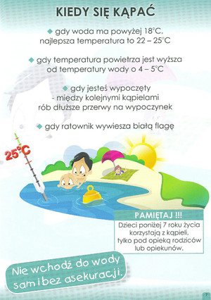- nie wchodzić do wody zaraz po opalaniu się na słońcu - może to grozić szokiem termicznym lub utratą przytomności;
