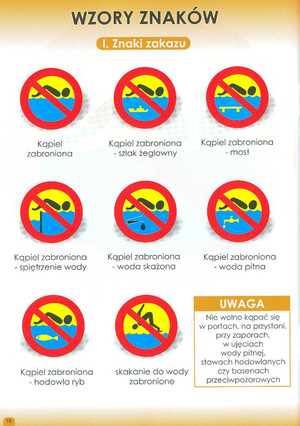 - dzieci i osoby dorosłe, które korzystają ze sprzętów pływających miały na sobie założony kapok;
