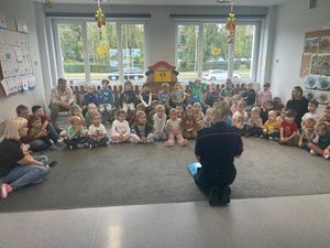 Spotkanie przebiegło w bardzo miłej i radosnej atmosferze. Dzieci wraz z wychowawcami podziękowały asp. Lidii Łynko za odwiedziny, ciekawą rozmowę i cenne wskazówki dotyczące przede wszystkim bezpieczeństwa.
