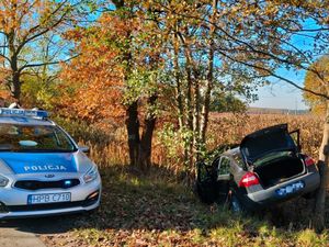 Policjanci Wydziału Ruchu Drogowego trzebnickiej komendy powiatowej w sobotę 1 listopada zostali skierowani do zdarzenia drogowego, do którego doszło nieopodal miejscowości Przyborów. Na miejscu mundurowi ustalili, że kierujący samochodem osobowym marki Renault, 24-letni mieszkaniec powiatu trzebnickiego nie dostosował prędkości do warunków panujących na drodze, co doprowadziło do utraty panowania nad pojazdem, a następnie wypadł z drogi.