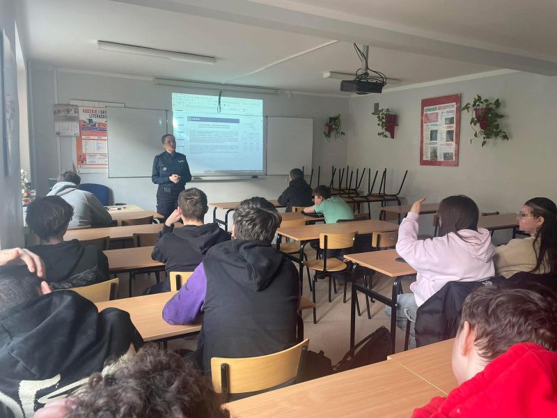 Podczas spotkania asp. Lidia Łynko wyjaśniła, czym jest hejt, jakie formy może przybierać oraz jakie konsekwencje prawne grożą osobom dopuszczającym się przemocy słownej i psychicznej w sieci. Młodzież dowiedziała się również, jaki przepisy regulują odpowiedzialność prawną nieletnich, które wynikają z Ustawy o wspieraniu i resocjalizacji nieletnich.